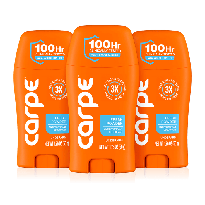 Carpe works by stopping sweat at the source while keeping your skin comfortable and healthy. Its active ingredients gently block sweat glands to reduce perspiration, while absorbent powders soak up moisture and leave you feeling dry. At the same time, odor-fighting ingredients target the bacteria that cause smell, and skin-conditioning ingredients help keep your underarms smooth and irritation-free. Developed by two friends who wanted a real solution for excessive sweating, Carpe has since been tested, refined, and trusted by millions. The result is a dermatologist-recommended antiperspirant that actually works! Carpe helps you stay dry, fresh, and confident all day.